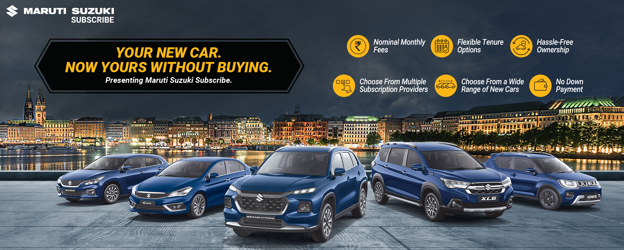Maruti Suzuki Subscribe enables all customers to enjoy driving their preferred Maruti Suzuki cars without having to deal with all the financial responsibilities that come with owning a car.All you need to do is opt for a monthly subscription plan at a fixed monthly fee, which includes the routine maintenance and insurance costs, and choose a flexible tenure. At Autonation in, Adore Sector 86, Faridabad, all Hatchback, Sedan, SUV, the MUV models line-up includes Baleno, Invicto, EVitara, Jimny, Ciaz, Ignis, Fronx, Grand Vitara, XL6. Here, you will enjoy Maruti Suzuki Subscribe benefits such as: